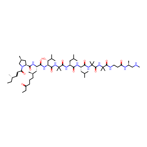 | SMILES | CCC(=O)CCC[C@@H](C)C[C@H](NC(=O)[C@@H]1C[C@H](C)CN1C(=O)/C=C/[C@@H](C)CC)C(=O)N[C@H](C(=O)NC(C)(C)C(=O)N[C@@H](CC(C)C)C(=O)N[C@@H](CC(C)C)C(=O)NC(C)(C)C(=O)NC(C)(C)C(=O)NCCC(=O)N[C@@H](C)CNC)[C@H](O)C(C)C |