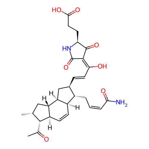 | SMILES | CC(=O)[C@H]1[C@@H]2C=C[C@@H]3[C@@H](C/C=C\C(N)=O)[C@H](/C=C/C(O)=C4C(=O)N[C@@H](CCC(=O)O)C4=O)C[C@@H]3[C@H]2C[C@H]1C |