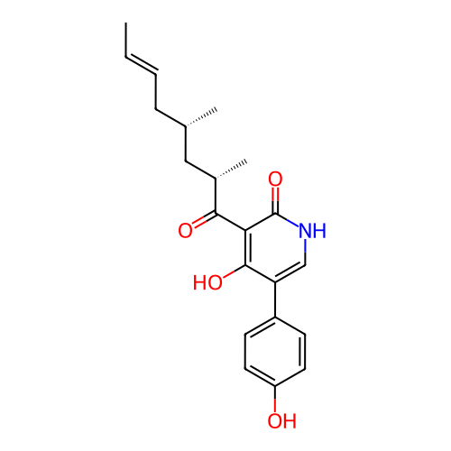 | SMILES | C/C=C/C[C@H](C)C[C@H](C)C(=O)C1=C(O)C(C2=CC=C(O)C=C2)=CNC1=O |