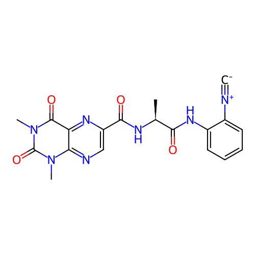 | SMILES | [C-]#[N+]C1=CC=CC=C1NC(=O)[C@H](C)NC(=O)C1=CN=C2C(=N1)C(=O)N(C)C(=O)N2C |