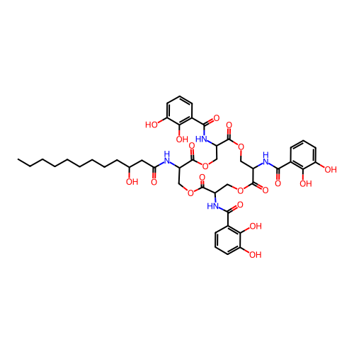 | SMILES | CCCCCCCCCC(O)CC(=O)NC1COC(=O)C(NC(=O)C2=C(O)C(O)=CC=C2)COC(=O)C(NC(=O)C2=C(O)C(O)=CC=C2)COC(=O)C(NC(=O)C2=C(O)C(O)=CC=C2)COC1=O |