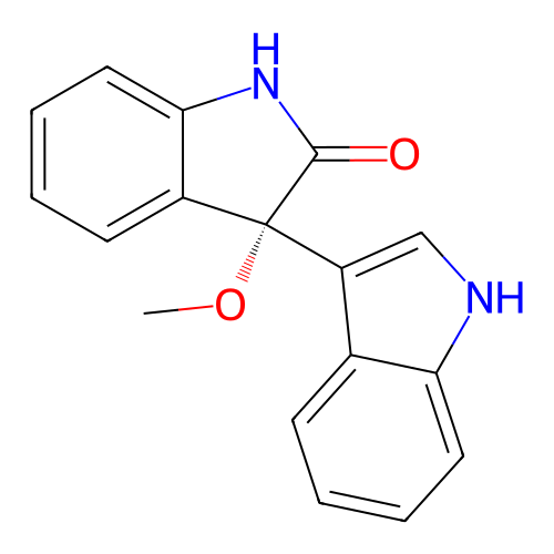| InChI | InChI=1S/C17H14N2O2/c1-21-17(12-7-3-5-9-15(12)19-16(17)20)13-10-18-14-8-4-2-6-11(13)14/h2-10,18H,1H3,(H,19,20)/t17-/m0/s1 |