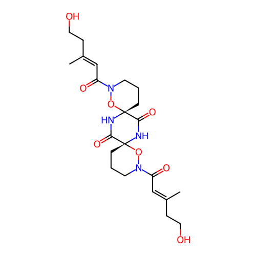 | SMILES | C/C(=C\C(=O)N1CCC[C@@]2(NC(=O)[C@]3(CCCN(C(=O)/C=C(\C)CCO)O3)NC2=O)O1)CCO |
