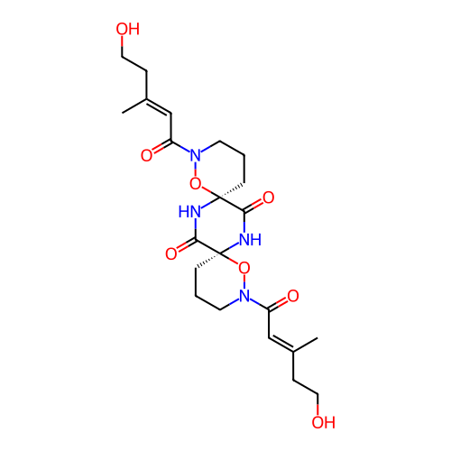 | SMILES | C/C(=C\C(=O)N1CCC[C@]2(NC(=O)[C@@]3(CCCN(C(=O)/C=C(\C)CCO)O3)NC2=O)O1)CCO |
