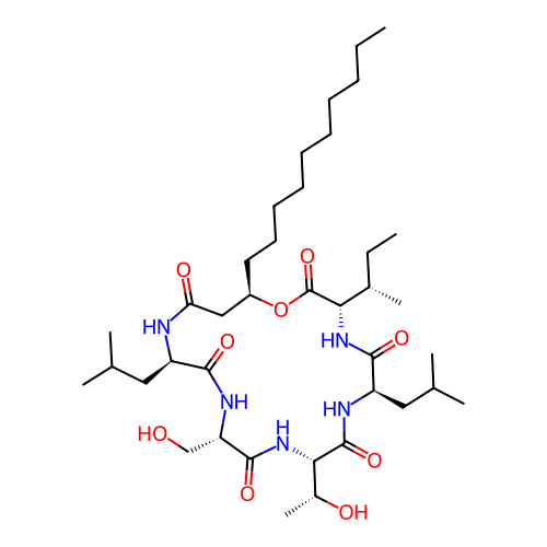 | SMILES | CCCCCCCCCC[C@@H]1CC(=O)N[C@H](CC(C)C)C(=O)N[C@@H](CO)C(=O)N[C@@H]([C@@H](C)O)C(=O)N[C@H](CC(C)C)C(=O)N[C@@H]([C@@H](C)CC)C(=O)O1 |