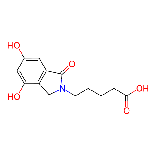 | SMILES | O=C(O)CCCCN1CC2=C(C=C(O)C=C2O)C1=O |