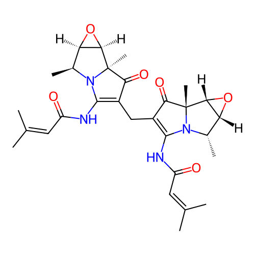 | SMILES | CC(C)=CC(=O)NC1=C(CC2=C(NC(=O)C=C(C)C)N3[C@@H](C)[C@H]4O[C@H]4[C@@]3(C)C2=O)C(=O)[C@]2(C)[C@@H]3O[C@@H]3[C@H](C)N12 |