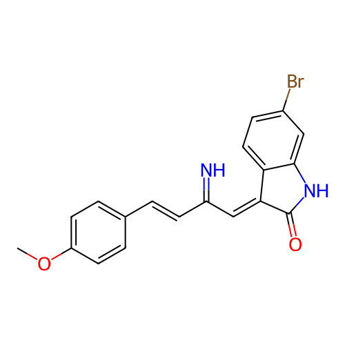 | SMILES | COC1=CC=C(/C=C/C(=N)/C=C2/C(=O)NC3=CC(Br)=CC=C23)C=C1 |