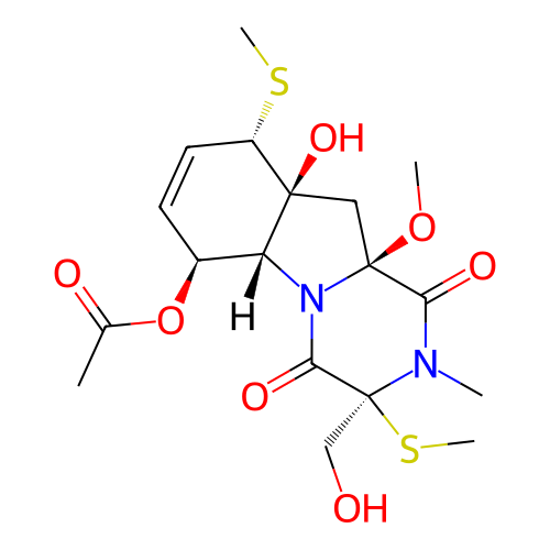 | SMILES | CO[C@]12C[C@@]3(O)[C@@H](SC)C=C[C@H](OC(C)=O)[C@H]3N1C(=O)[C@](CO)(SC)N(C)C2=O |