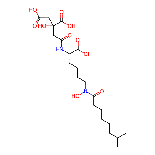 | SMILES | CC(C)CCCCCC(=O)N(O)CCCC[C@H](NC(=O)CC(O)(CC(=O)O)C(=O)O)C(=O)O |