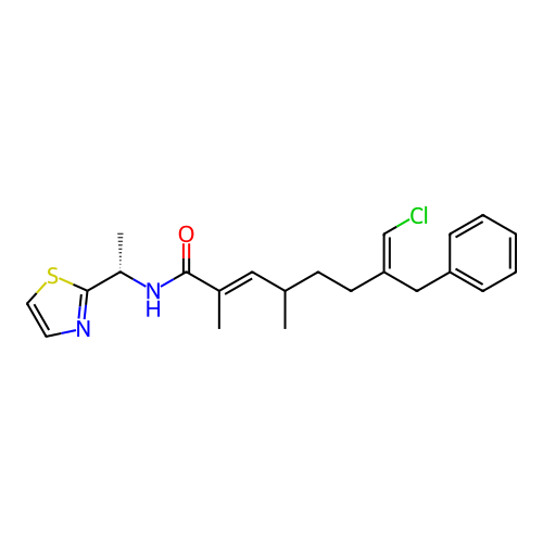 | SMILES | C/C(=C\C(C)CC/C(=C/Cl)CC1=CC=CC=C1)C(=O)N[C@@H](C)C1=NC=CS1 |