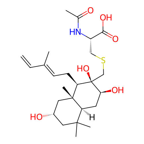 | SMILES | C=C/C(C)=C/C[C@@H]1[C@@]2(C)C[C@@H](O)CC(C)(C)[C@@H]2C[C@H](O)[C@@]1(O)CSC[C@H](NC(C)=O)C(=O)O |