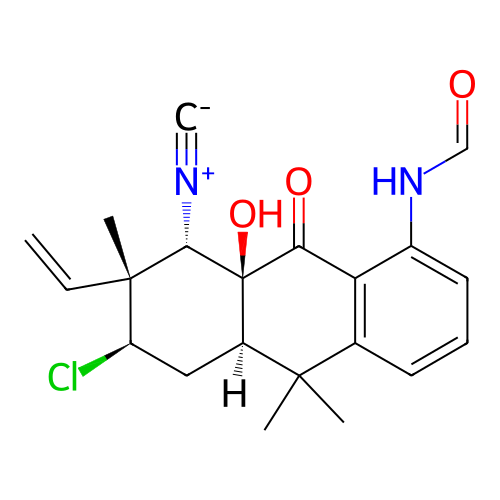 | SMILES | [C-]#[N+][C@@H]1[C@]2(O)C(=O)C3=C(C=CC=C3NC=O)C(C)(C)[C@H]2C[C@@H](Cl)[C@]1(C)C=C |