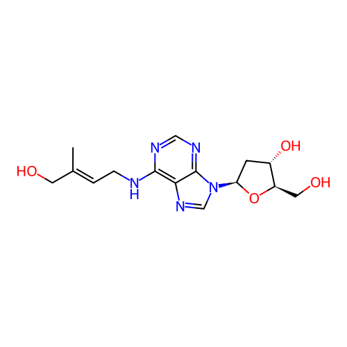 | InChI | InChI=1S/C15H21N5O4/c1-9(5-21)2-3-16-14-13-15(18-7-17-14)20(8-19-13)12-4-10(23)11(6-22)24-12/h2,7-8,10-12,21-23H,3-6H2,1H3,(H,16,17,18)/b9-2+/t10-,11+,12+/m0/s1 |