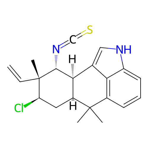 | SMILES | C=C[C@@]1(C)[C@H](Cl)C[C@H]2[C@H](C3=CNC4=CC=CC(=C34)C2(C)C)[C@H]1N=C=S |