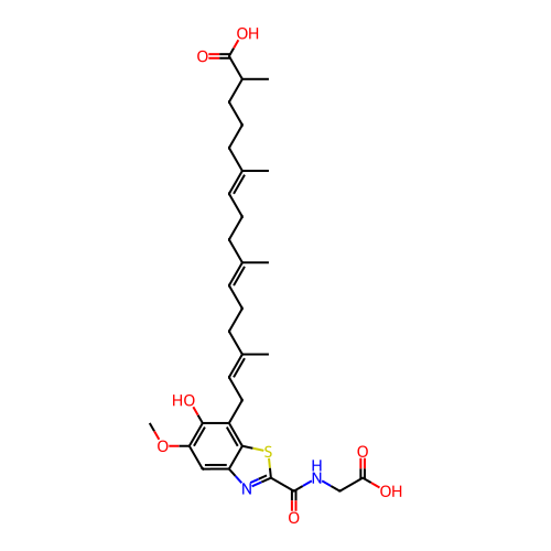 | SMILES | COC1=C(O)C(C/C=C(\C)CC/C=C(\C)CC/C=C(\C)CCCC(C)C(=O)O)=C2SC(C(=O)NCC(=O)O)=NC2=C1 |