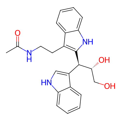 | SMILES | CC(=O)NCCC1=C([C@H](C2=CNC3=CC=CC=C23)[C@H](O)CO)NC2=CC=CC=C12 |