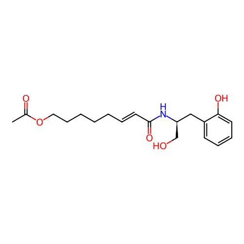 | SMILES | CC(=O)OCCCCC/C=C/C(=O)N[C@H](CO)CC1=CC=CC=C1O |