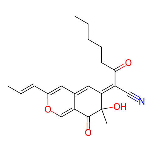 | SMILES | C/C=C/C1=CC2=C/C(=C(/C#N)C(=O)CCCCC)C(C)(O)C(=O)C2=CO1 |