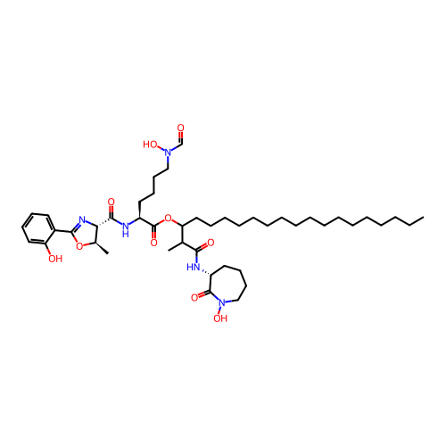 | SMILES | CCCCCCCCCCCCCCCCCC(OC(=O)[C@H](CCCCN(O)C=O)NC(=O)[C@H]1N=C(C2=CC=CC=C2O)O[C@@H]1C)C(C)C(=O)N[C@@H]1CCCCN(O)C1=O |
