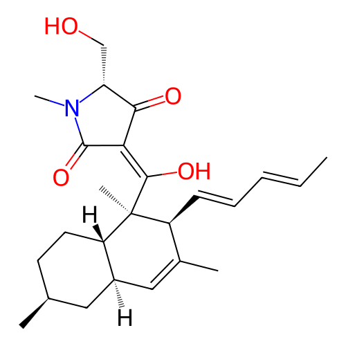| InChI | InChI=1S/C25H35NO4/c1-6-7-8-9-18-16(3)13-17-12-15(2)10-11-19(17)25(18,4)23(29)21-22(28)20(14-27)26(5)24(21)30/h6-9,13,15,17-20,27,29H,10-12,14H2,1-5H3/b7-6+,9-8+,23-21+/t15-,17+,18-,19-,20+,25-/m0/s1 |