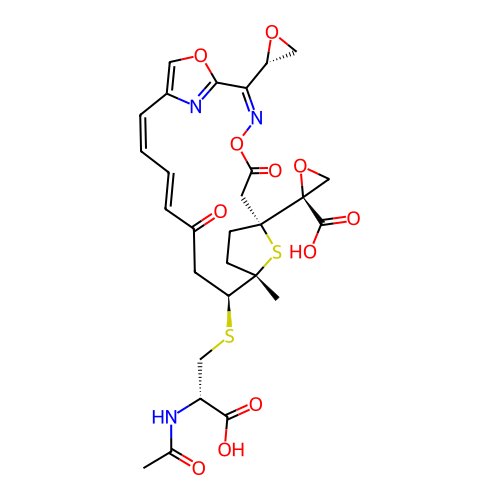 | SMILES | CC(=O)N[C@H](CS[C@H]1CC(=O)/C=C/C=C\C2=COC(=N2)/C([C@H]2CO2)=N\OC(=O)C[C@@]2([C@@]3(C(=O)O)CO3)CC[C@]1(C)S2)C(=O)O |