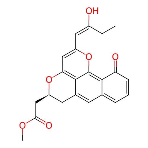 | InChI | InChI=1S/C22H20O6/c1-3-14(23)9-16-10-18-21-13(8-15(27-18)11-19(25)26-2)7-12-5-4-6-17(24)20(12)22(21)28-16/h4-7,9-10,15,23H,3,8,11H2,1-2H3/t15-/m0/s1 |