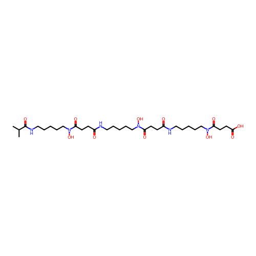 | SMILES | CC(C)C(=O)NCCCCCN(O)C(=O)CCC(=O)NCCCCCN(O)C(=O)CCC(=O)NCCCCCN(O)C(=O)CCC(=O)O |