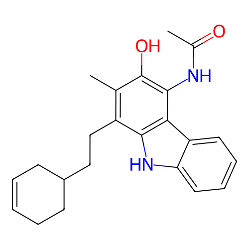 | SMILES | CC(=O)NC1=C(O)C(C)=C(CCC2CC=CCC2)C2=C1C1=CC=CC=C1N2 |