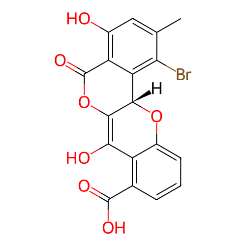 | SMILES | CC1=CC(O)=C2C(=O)OC3=C(O)C4=C(C(=O)O)C=CC=C4O[C@H]3C2=C1Br |