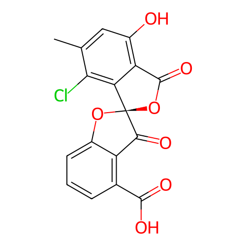 | SMILES | CC1=CC(O)=C2C(=O)O[C@@]3(OC4=CC=CC(C(=O)O)=C4C3=O)C2=C1Cl |