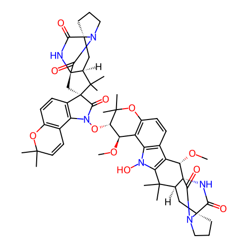 | SMILES | CO[C@H]1C2=C(N(O)C3=C2C=CC2=C3[C@@H](OC)[C@H](ON3C(=O)[C@@]4(C[C@@]56NC(=O)[C@]7(CCCN7C5=O)C[C@H]6C4(C)C)C4=C3C3=C(C=C4)OC(C)(C)C=C3)C(C)(C)O2)C(C)(C)[C@@H]2C[C@]34CCCN3C(=O)[C@]12NC4=O |