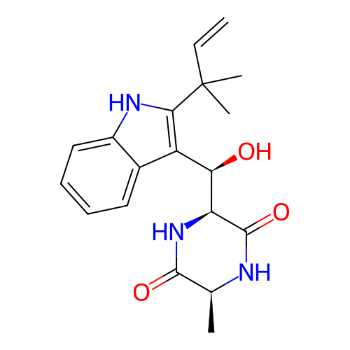| SMILES | C=CC(C)(C)C1=C([C@@H](O)[C@@H]2NC(=O)[C@H](C)NC2=O)C2=CC=CC=C2N1 |