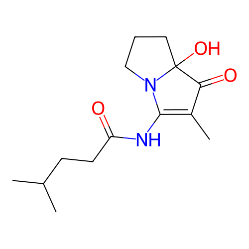 | InChI | InChI=1S/C14H22N2O3/c1-9(2)5-6-11(17)15-13-10(3)12(18)14(19)7-4-8-16(13)14/h9,19H,4-8H2,1-3H3,(H,15,17) |