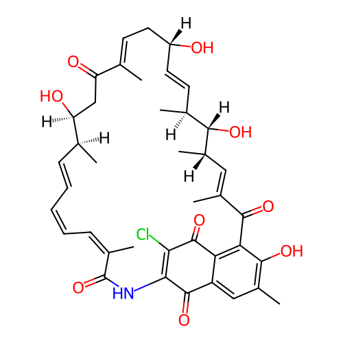 | SMILES | C[C@H]1/C=C/C=C\C=C(/C(=O)NC2=C(C(=O)C3=C(C(=C(C=C3C2=O)C)O)C(=O)/C(=C/[C@@H]([C@H]([C@H](/C=C/[C@H](C/C=C(/C(=O)C[C@@H]1O)\C)O)C)O)C)/C)Cl)\C |