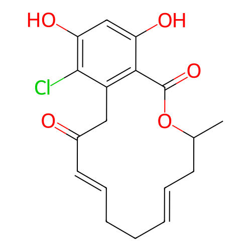 | SMILES | CC1C/C=C/CC/C=C/C(=O)CC2=C(C(=O)O1)C(O)=CC(O)=C2Cl |