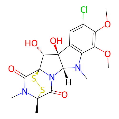 | SMILES | COC1=C(Cl)C=C2C(=C1OC)N(C)[C@@H]1N3C(=O)[C@@]4(C)SS[C@@]3(C(=O)N4C)[C@H](O)[C@]21O |