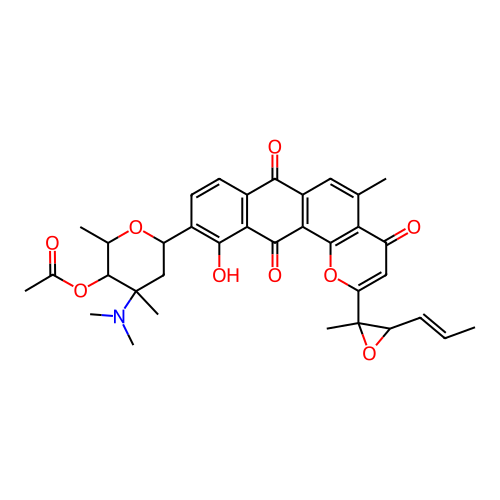 | SMILES | C/C=C/C1OC1(C)C1=CC(=O)C2=C(O1)C1=C(C=C2C)C(=O)C2=C(C1=O)C(O)=C(C1CC(C)(N(C)C)C(OC(C)=O)C(C)O1)C=C2 |