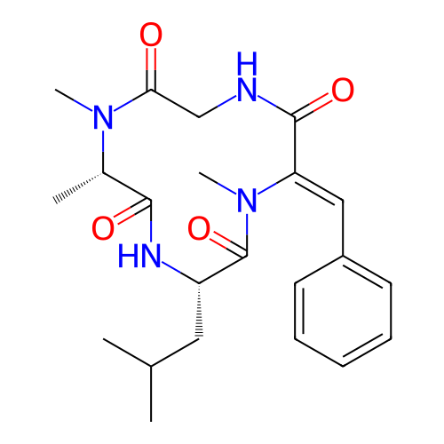 | SMILES | CC(C)C[C@@H]1NC(=O)[C@H](C)N(C)C(=O)CNC(=O)/C(=C/C2=CC=CC=C2)N(C)C1=O |