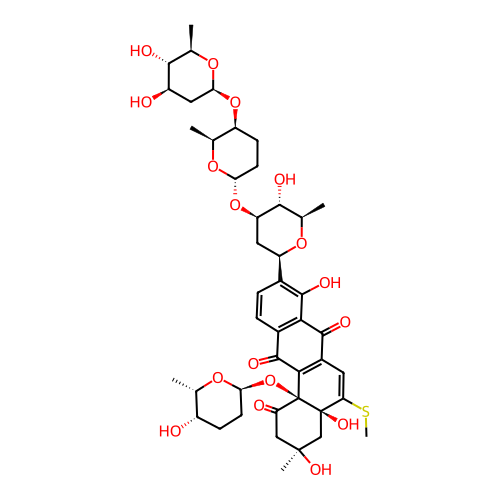 | SMILES | CSC1=CC2=C(C(=O)C3=C(C2=O)C(O)=C([C@H]2C[C@@H](O[C@H]4CC[C@H](O[C@H]5C[C@@H](O)[C@H](O)[C@@H](C)O5)[C@H](C)O4)[C@H](O)[C@@H](C)O2)C=C3)[C@@]2(O[C@H]3CC[C@H](O)[C@H](C)O3)C(=O)C[C@](C)(O)C[C@@]12O |