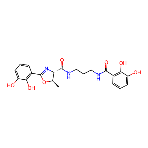 | SMILES | C[C@H]1OC(C2=C(O)C(O)=CC=C2)=N[C@@H]1C(=O)NCCCNC(=O)C1=C(O)C(O)=CC=C1 |