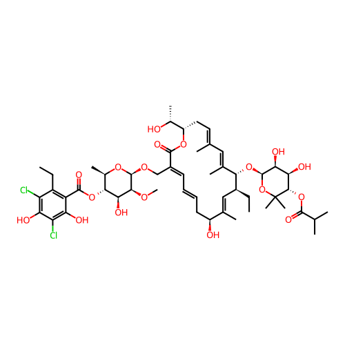 | SMILES | CC[C@H]1/C=C(/[C@H](C/C=C/C=C(/C(=O)O[C@@H](C/C=C(/C=C(/[C@@H]1O[C@H]2[C@H]([C@H]([C@@H](C(O2)(C)C)OC(=O)C(C)C)O)O)\C)\C)[C@@H](C)O)\CO[C@H]3[C@H]([C@H]([C@@H]([C@H](O3)C)OC(=O)C4=C(C(=C(C(=C4O)Cl)O)Cl)CC)O)OC)O)\C |