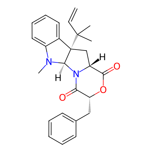 | SMILES | C=CC(C)(C)[C@]12C[C@@H]3C(=O)O[C@H](CC4=CC=CC=C4)C(=O)N3[C@H]1N(C)C1=CC=CC=C12 |