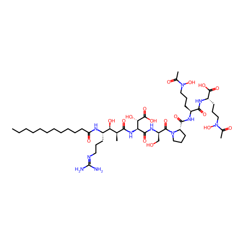 | SMILES | CCCCCCCCCCCC(=O)N[C@@H](CCCN=C(N)N)[C@@H](O)[C@H](C)C(=O)N[C@H](C(=O)N[C@H](CO)C(=O)N1CCC[C@H]1C(=O)N[C@@H](CCCN(O)C(C)=O)C(=O)N[C@@H](CCCN(O)C(C)=O)C(=O)O)[C@H](O)C(=O)O |