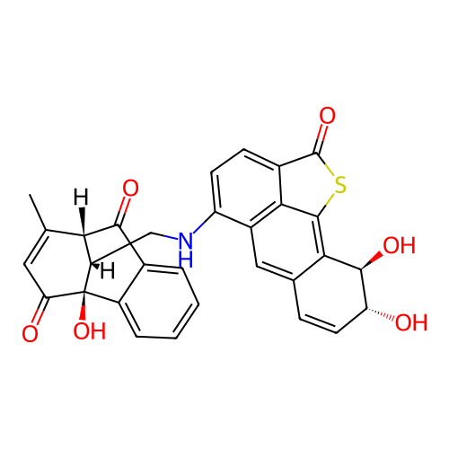 | InChI | InChI=1S/C30H23NO6S/c1-13-10-22(33)30(37)18-5-3-2-4-15(18)26(34)23(13)19(30)12-31-20-8-7-16-25-17(20)11-14-6-9-21(32)27(35)24(14)28(25)38-29(16)36/h2-11,19,21,23,27,31-32,35,37H,12H2,1H3/t19-,21+,23-,27-,30+/m0/s1 |