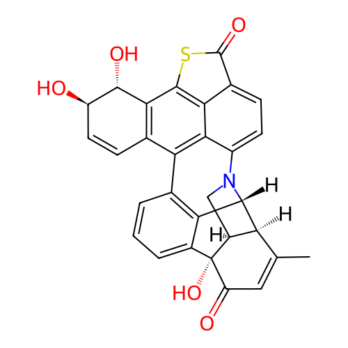 | InChI | InChI=1S/C30H21NO5S/c1-11-9-19(33)30(36)15-4-2-3-12-21-13-6-8-18(32)27(34)24(13)28-23-14(29(35)37-28)5-7-17(25(21)23)31-10-16(30)20(11)26(31)22(12)15/h2-9,16,18,20,26-27,32,34,36H,10H2,1H3/t16-,18+,20-,26+,27-,30+/m0/s1 |