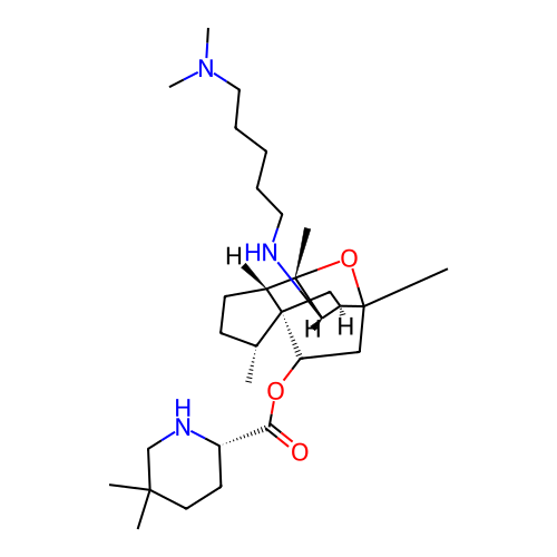 | InChI | InChI=1S/C30H53N3O3/c1-20-11-12-23-29(5)25(31-15-9-8-10-16-33(6)7)21-17-30(20,23)24(18-28(21,4)36-29)35-26(34)22-13-14-27(2,3)19-32-22/h20-25,31-32H,8-19H2,1-7H3/t20-,21-,22+,23-,24?,25+,28?,29+,30-/m1/s1 |