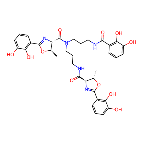 | SMILES | C[C@@H]1OC(C2=C(O)C(O)=CC=C2)=N[C@H]1C(=O)NCCCN(CCCNC(=O)C1=C(O)C(O)=CC=C1)C(=O)[C@H]1N=C(C2=C(O)C(O)=CC=C2)O[C@@H]1C |