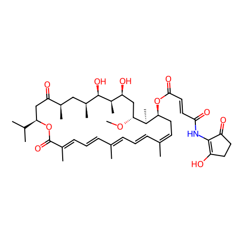 | SMILES | CO[C@@H]1C[C@H](O)[C@@H](C)[C@H](O)[C@@H](C)C[C@@H](C)C(=O)C[C@H](C(C)C)OC(=O)/C(C)=C/C=C/C(C)=C/C=C/C(C)=C\C[C@H](OC(=O)/C=C/C(=O)NC2=C(O)CCC2=O)[C@@H]1C |