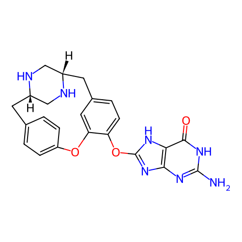 | SMILES | NC1=NC2=C([NH]C(OC3=CC=C4C=C3OC3=CC=C(C=C3)C[C@H]3CN[C@H](CN3)C4)=N2)C(=O)[NH]1 |